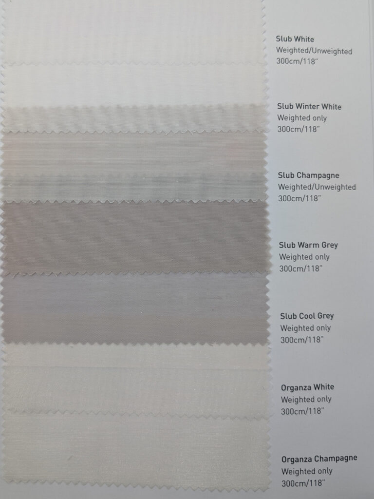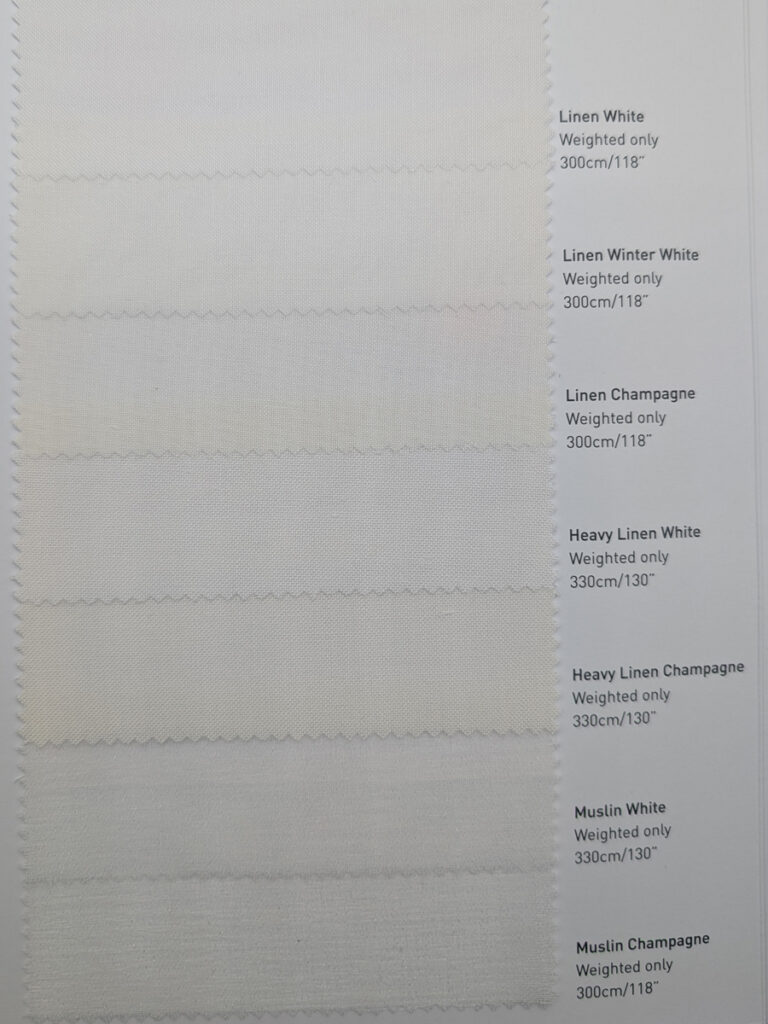 Gardinenstoffe in verschiedenen Ausführungen, Strukturen und Farben